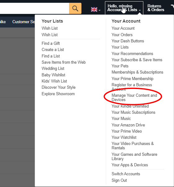 2.进入网页点击下方画圈的地方:Manage Your Content and Devices